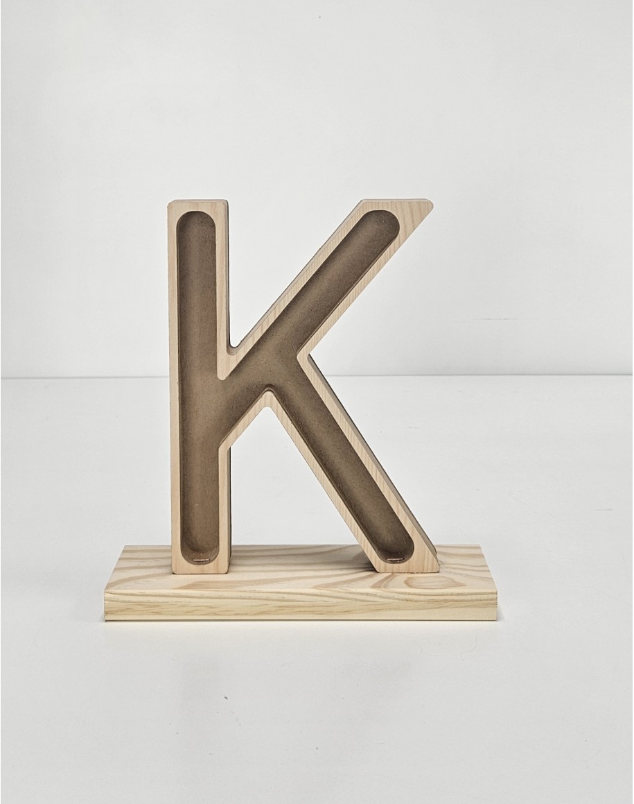 Letra K con peana decorativa en madera personalizable