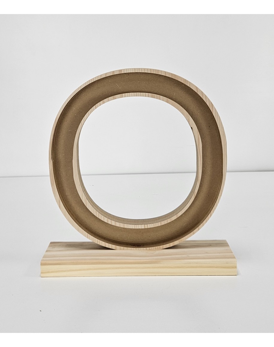 Letra O con peana en madera maciza de 22mm, con interior hueco para que puedas decorarla con flores secas, luces LED, musgo o cualquier idea creativa. Perfecta para regalos, bodas, eventos o como pieza única para tu hogar. ¡Personalízala y dale vida a tu estilo!.